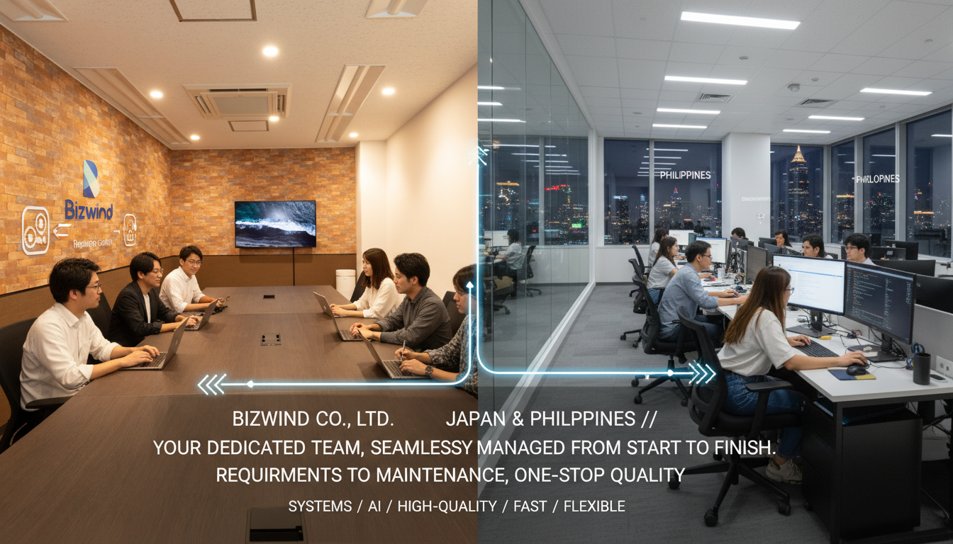 Bizwind は、業務システム・基幹システム・AI開発に特化した日系オフショア開発会社です。